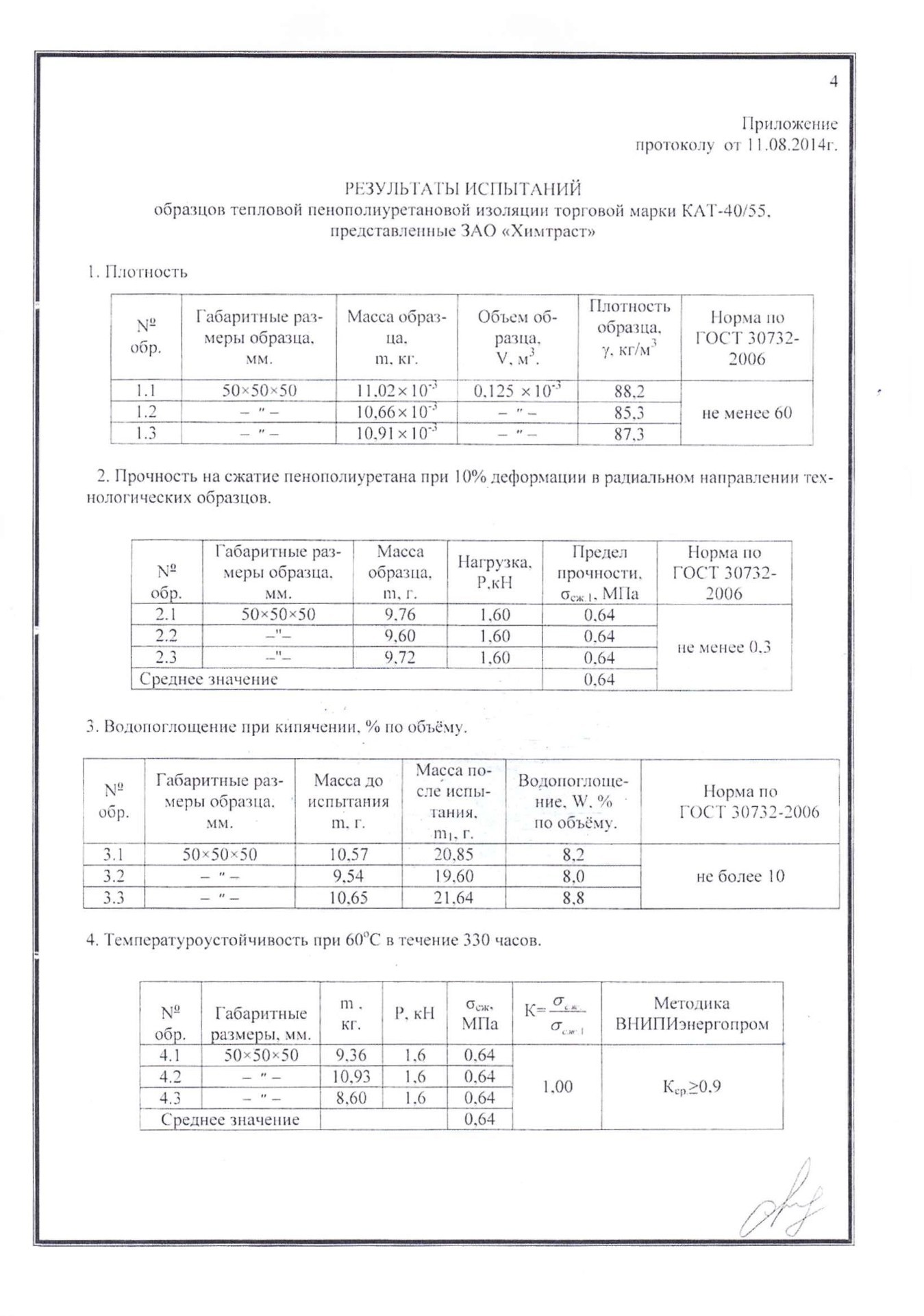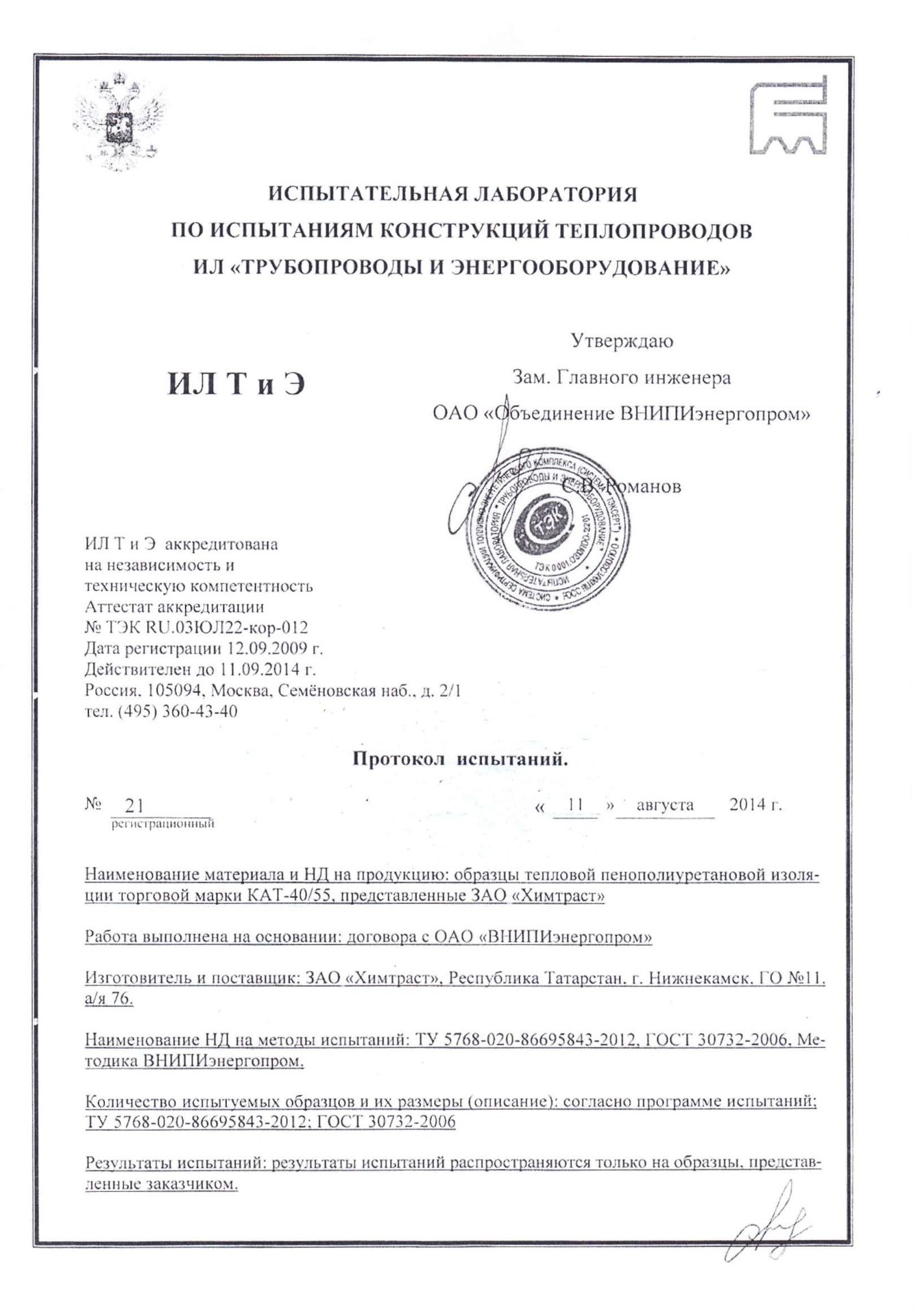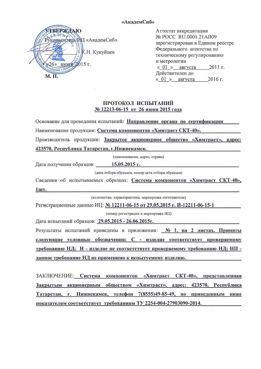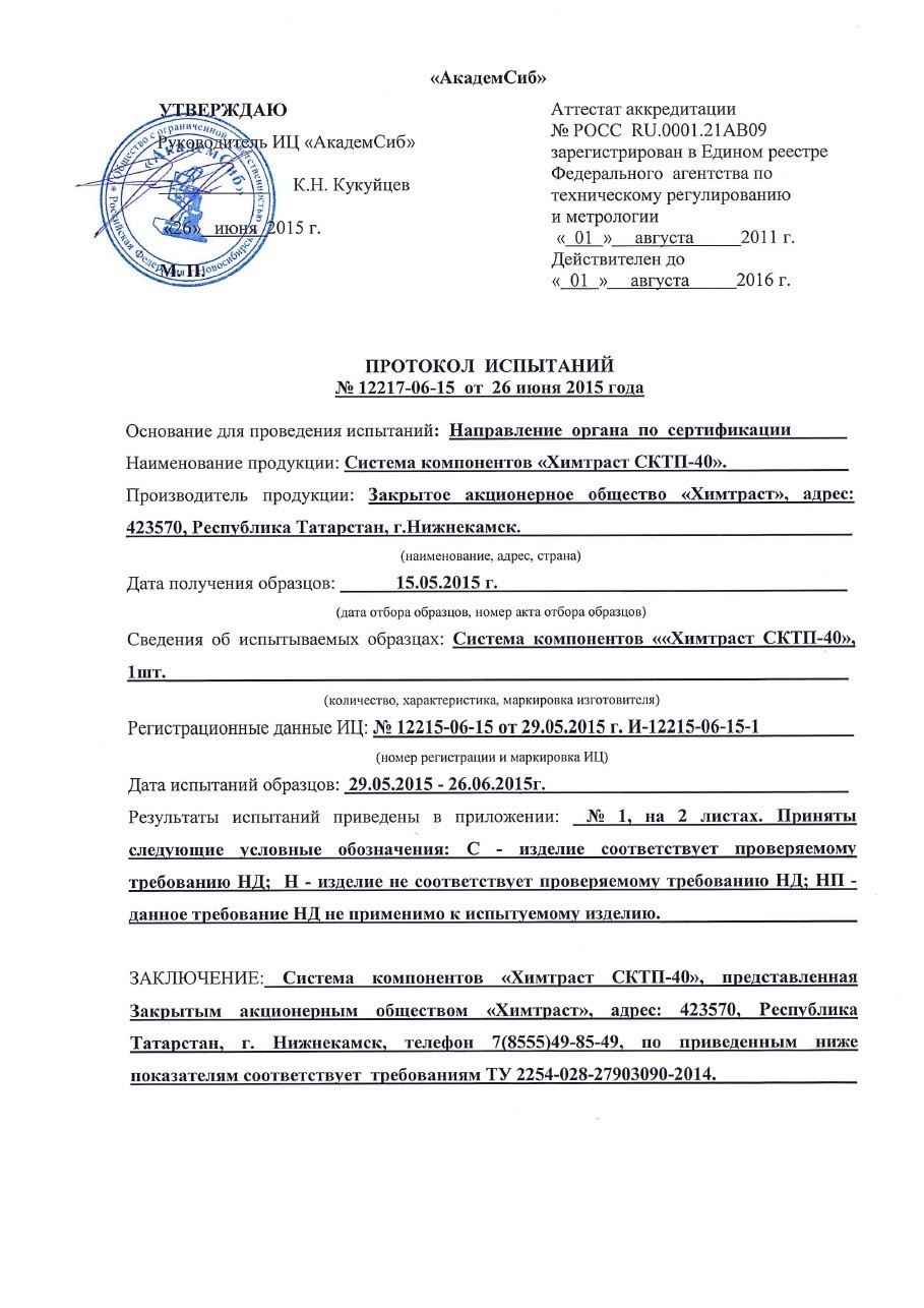 Протокол и результаты испытаний трубного компонента КАТ-40/55