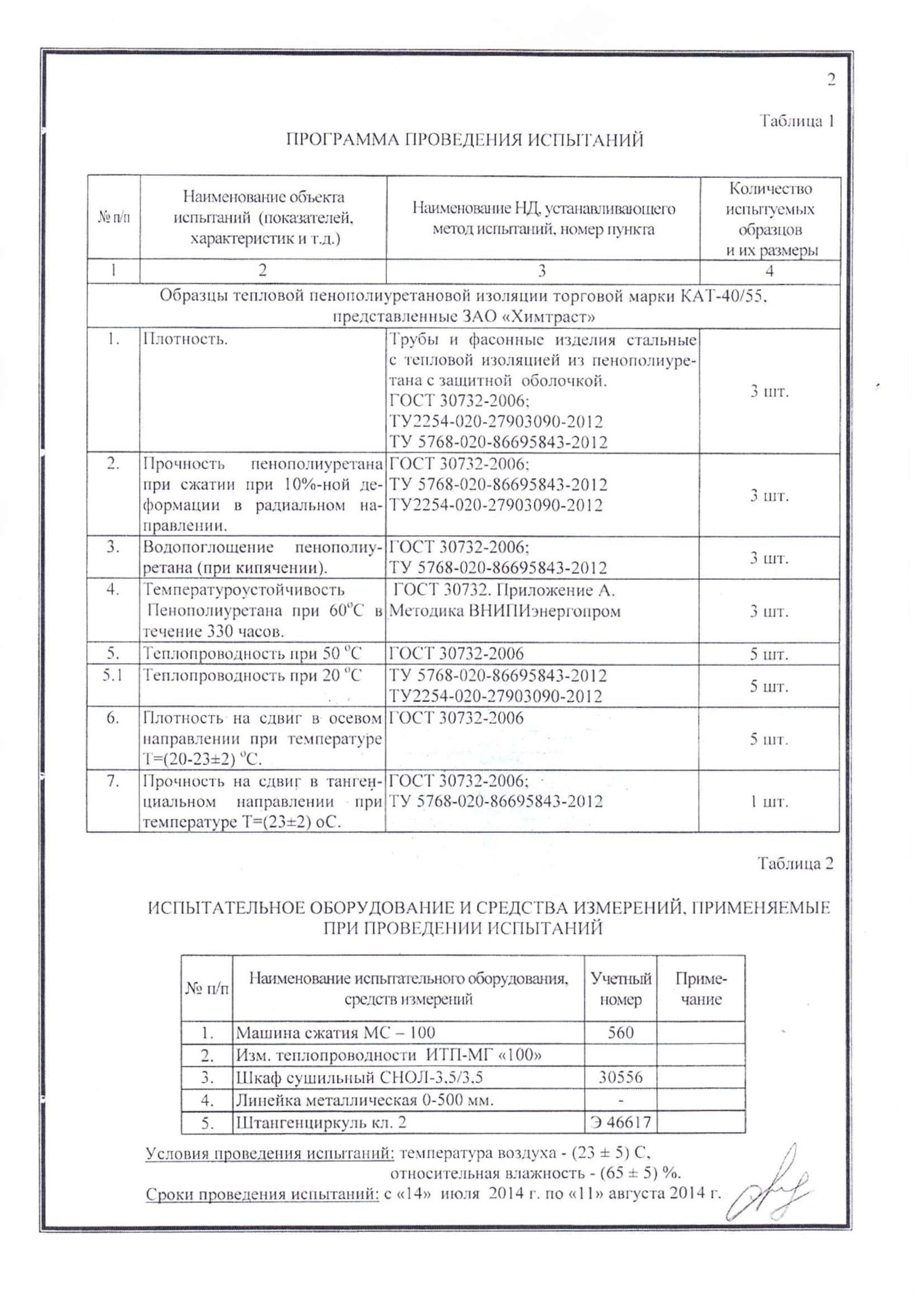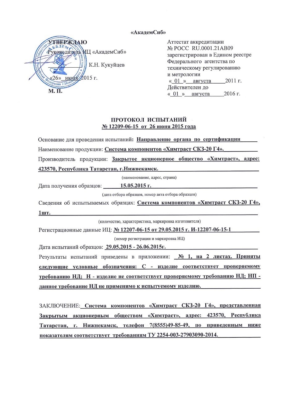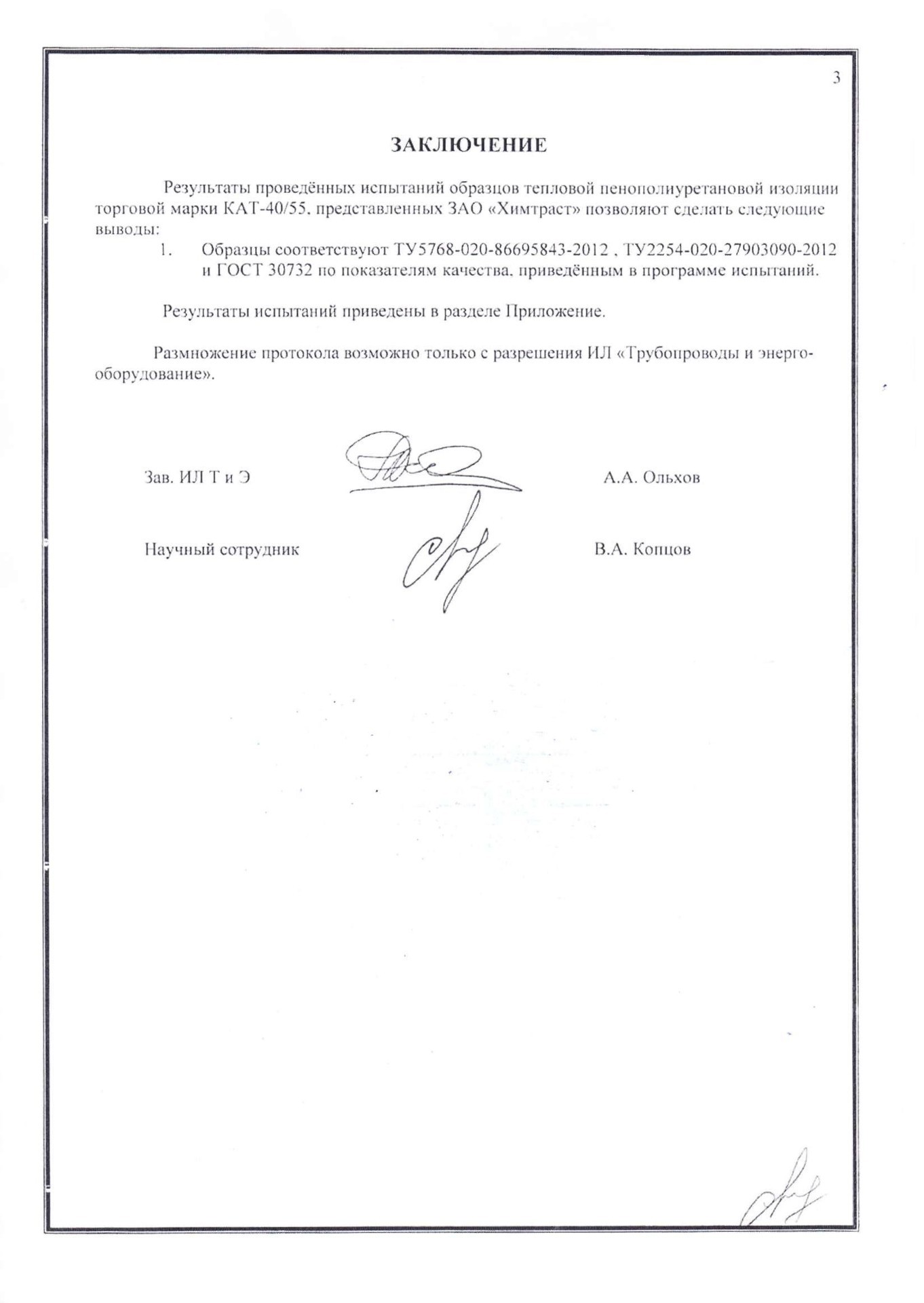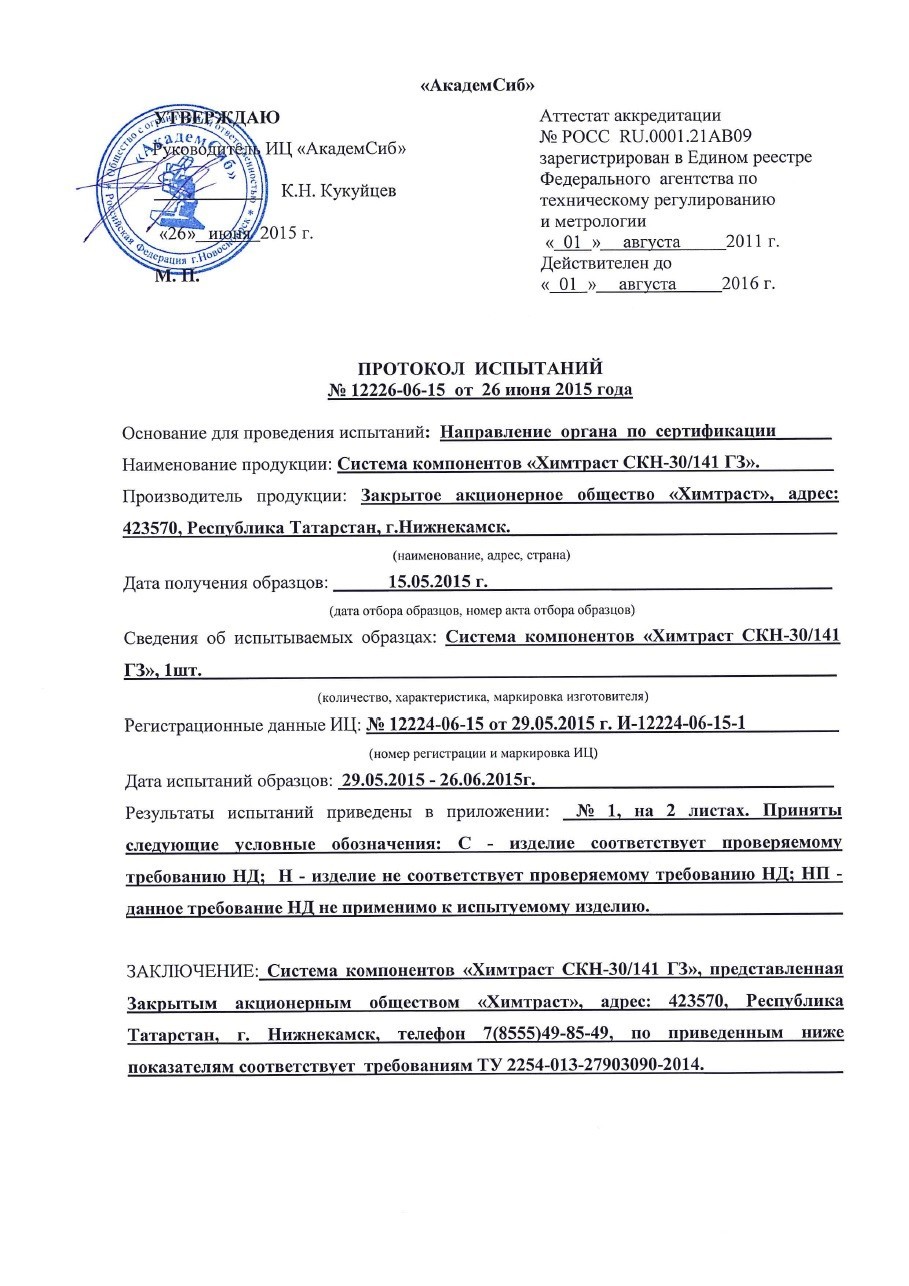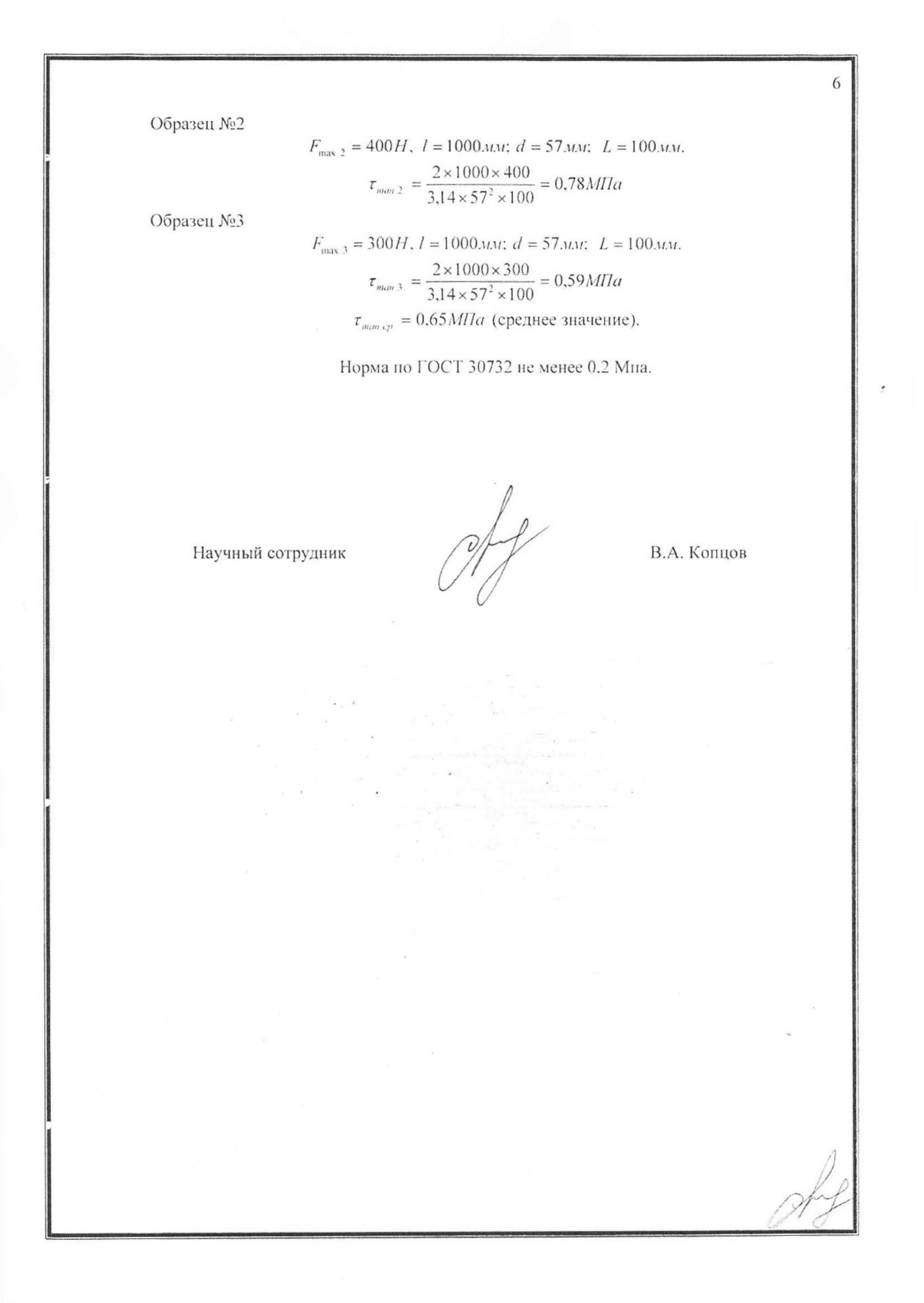 Протокол и результаты испытаний трубного компонента КАТ-40/55