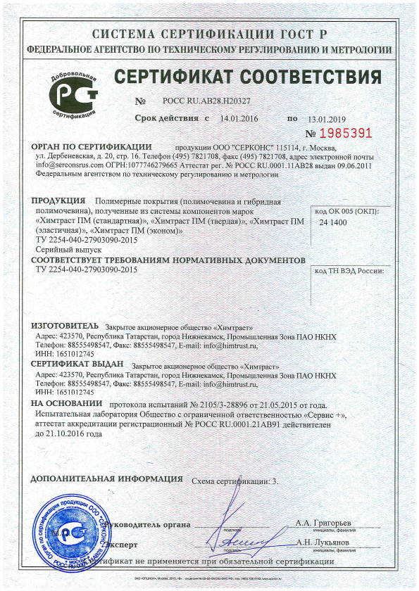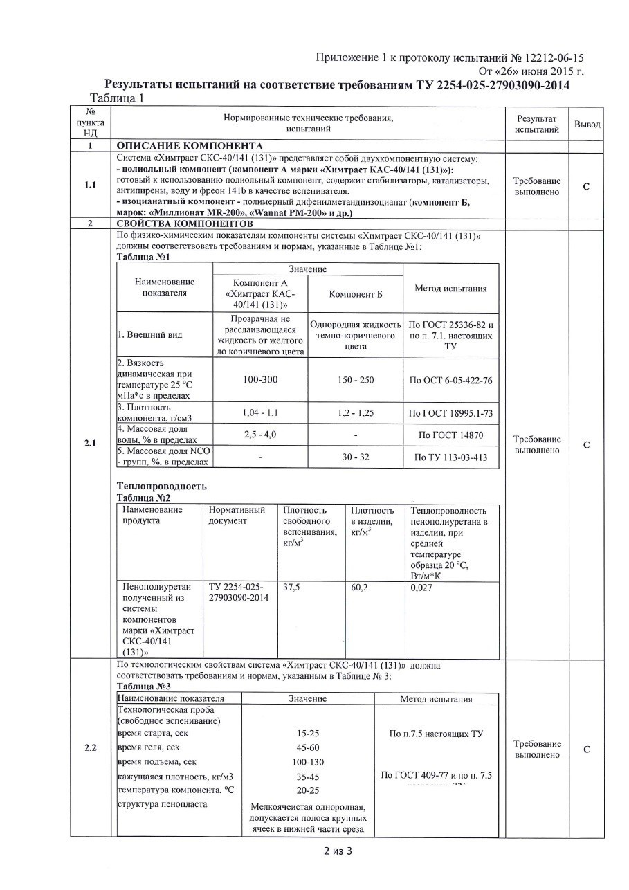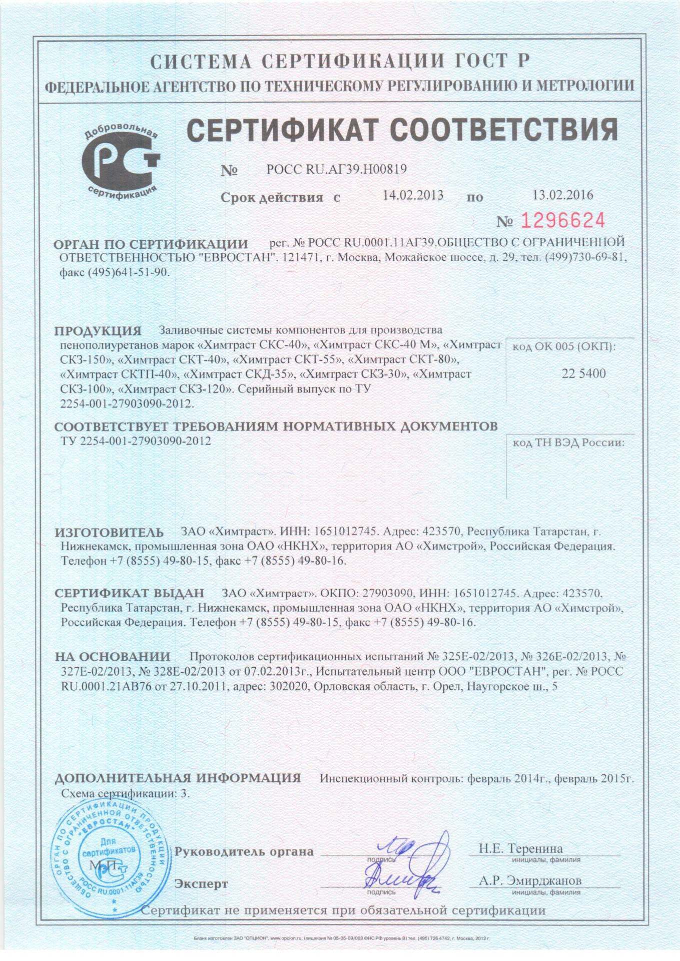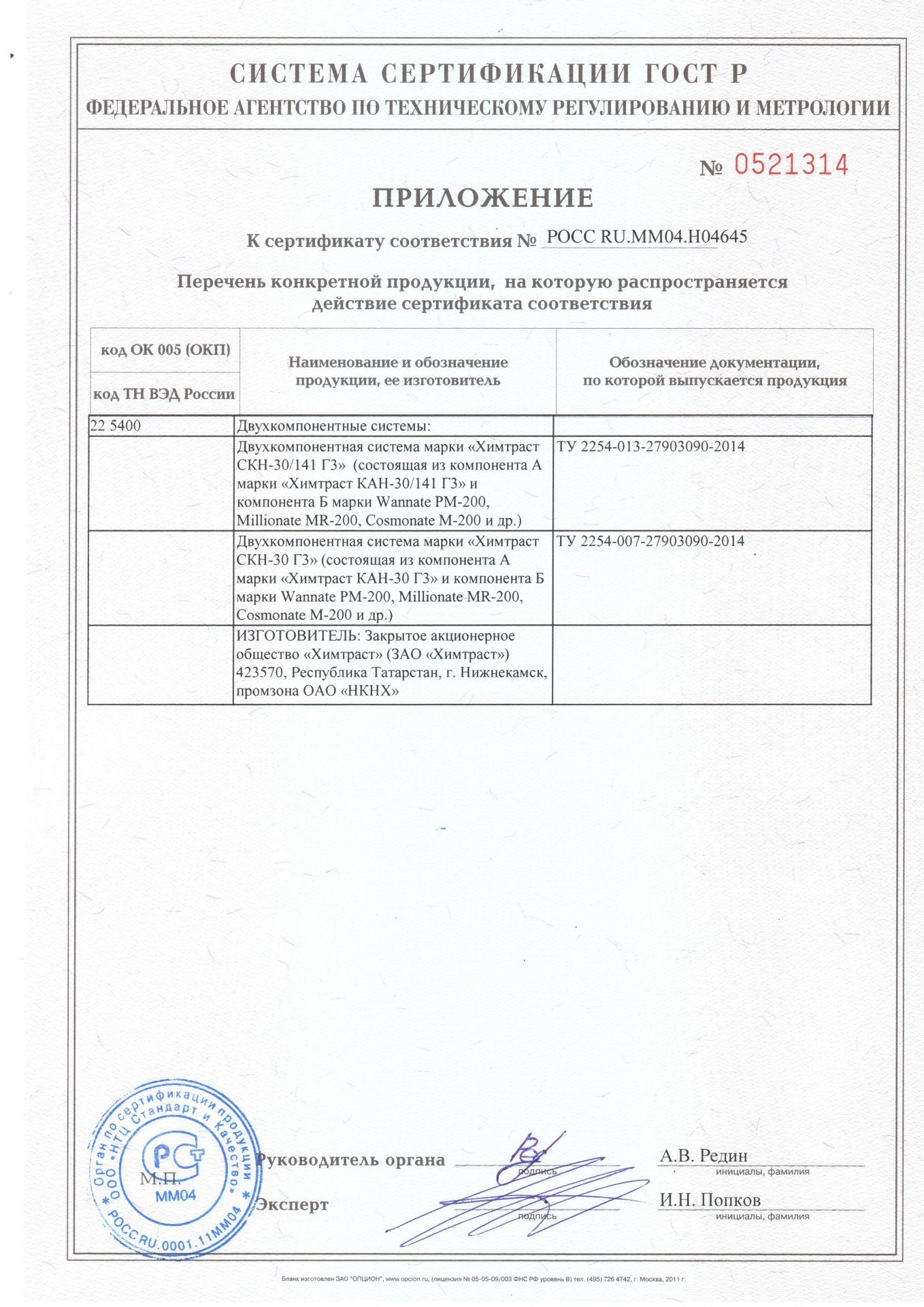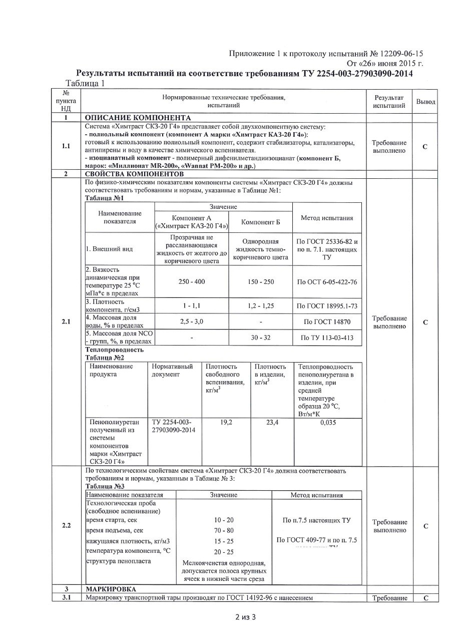 Сертификат соответствия на физико-механические свойства напылительных систем