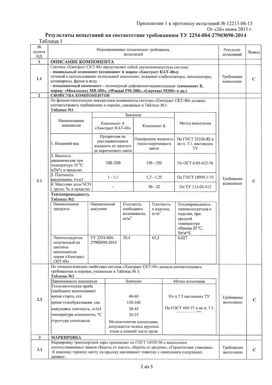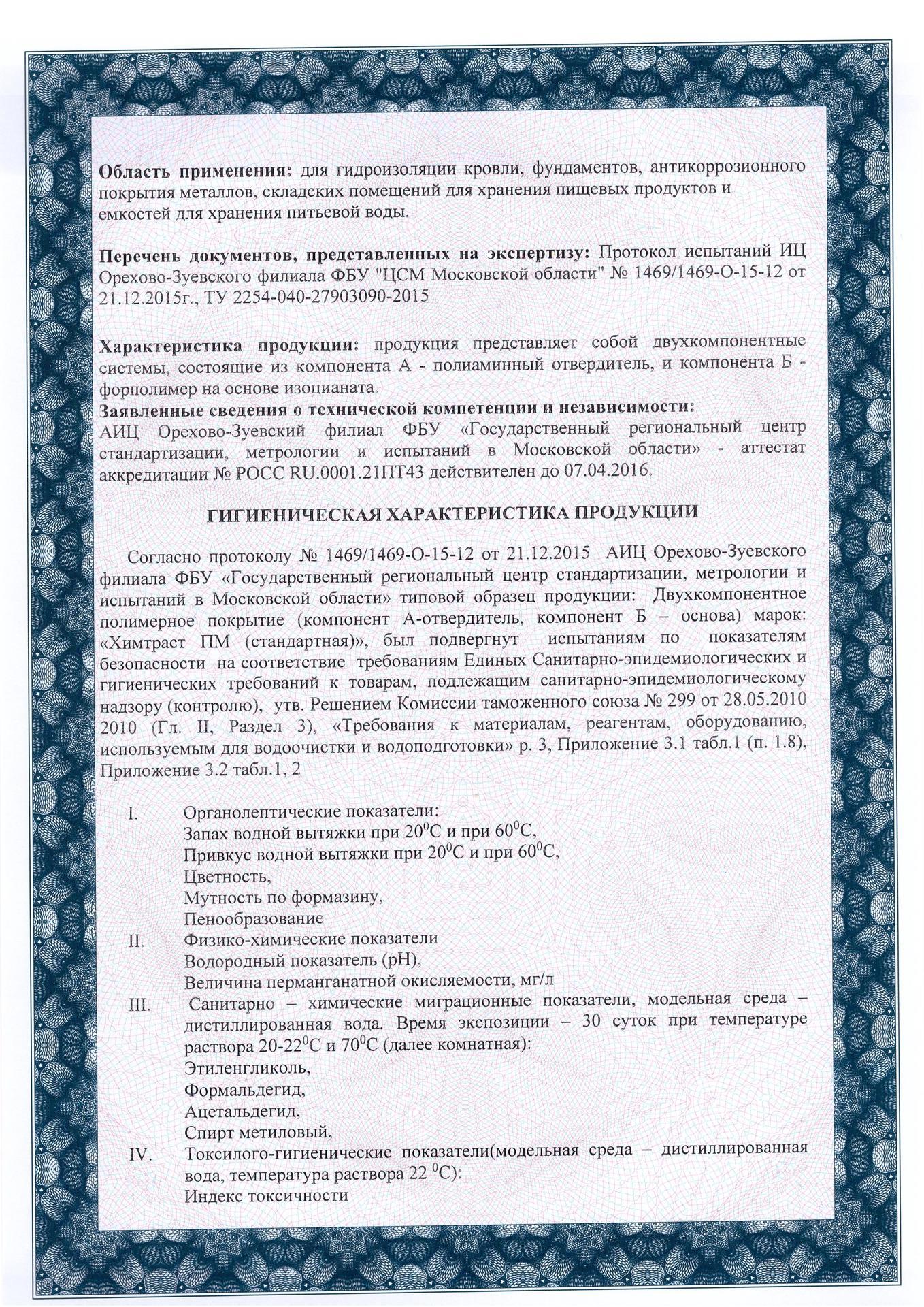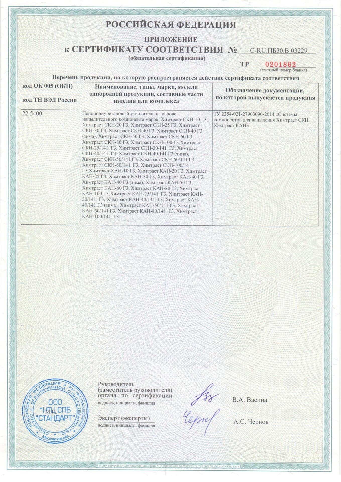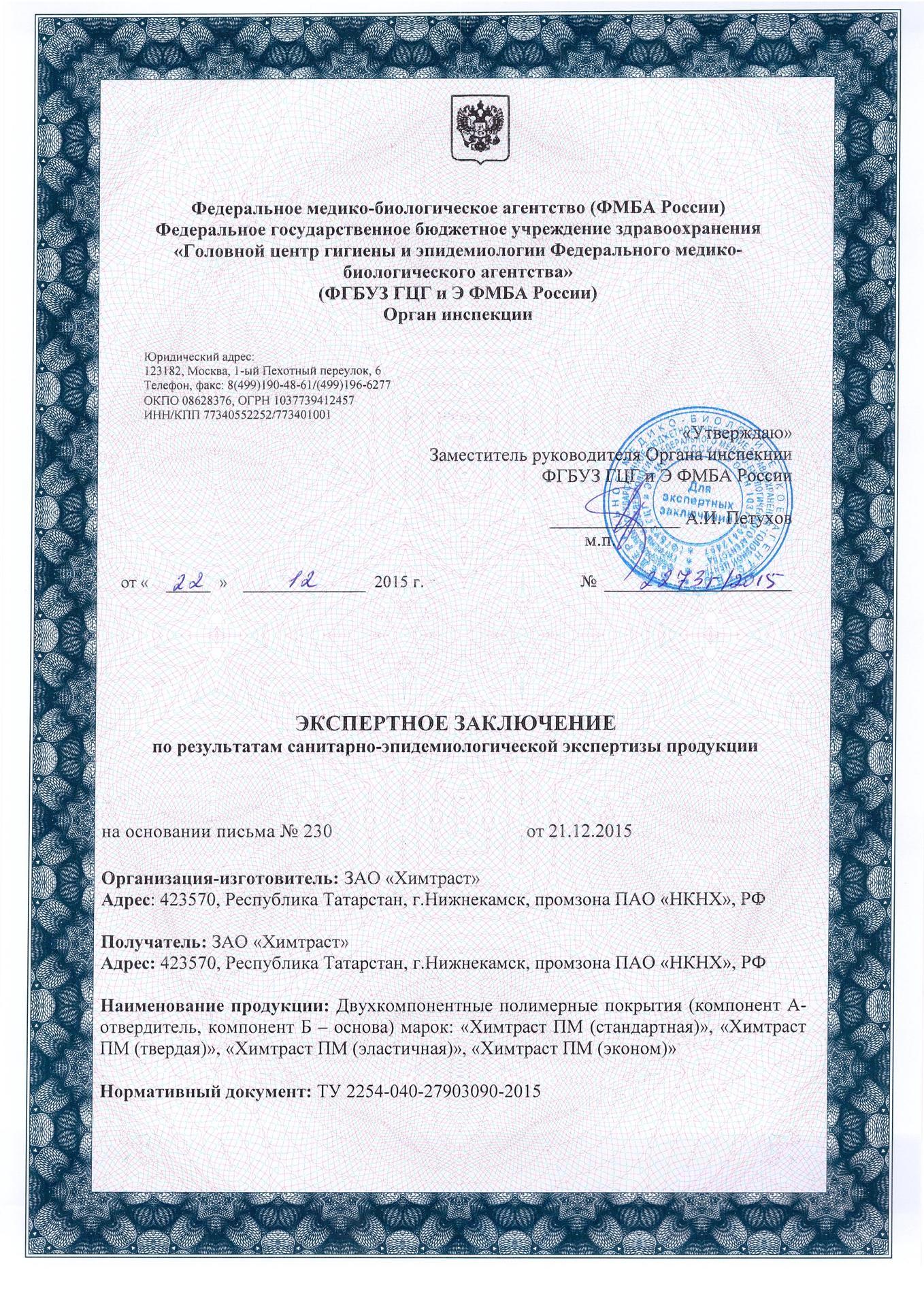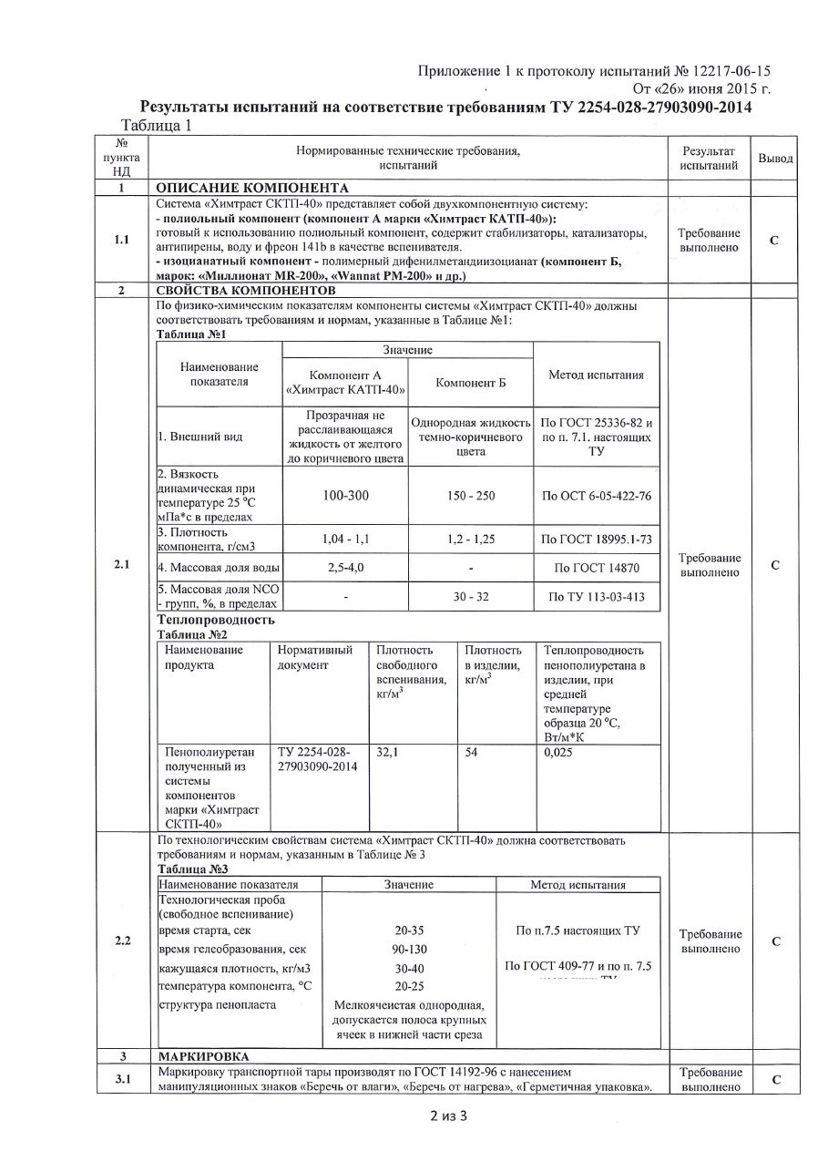 Сертификат соответствия на физико-механические свойства напылительных систем
