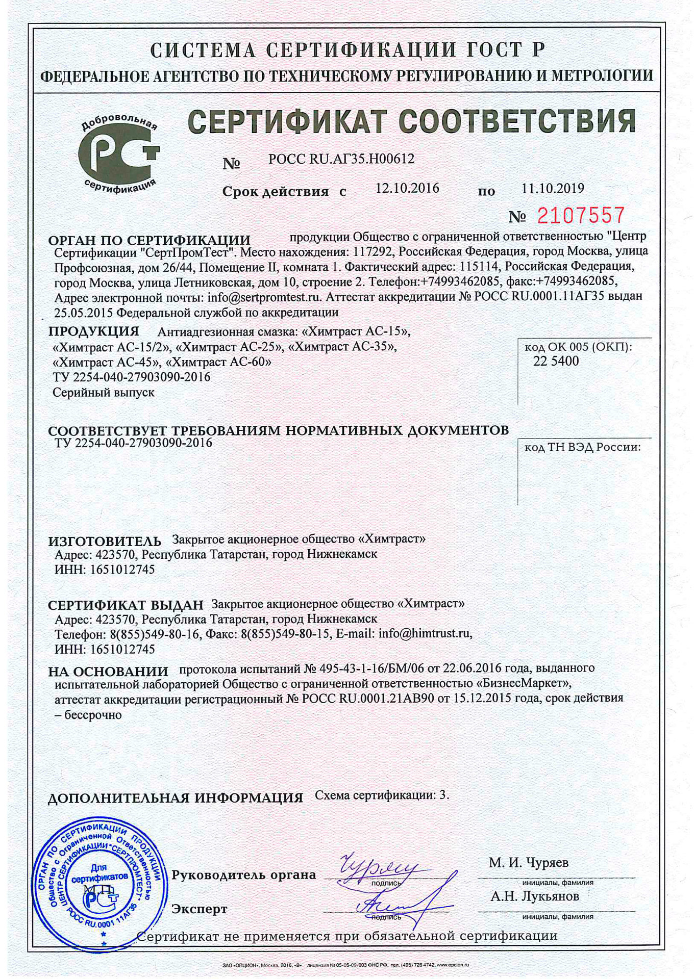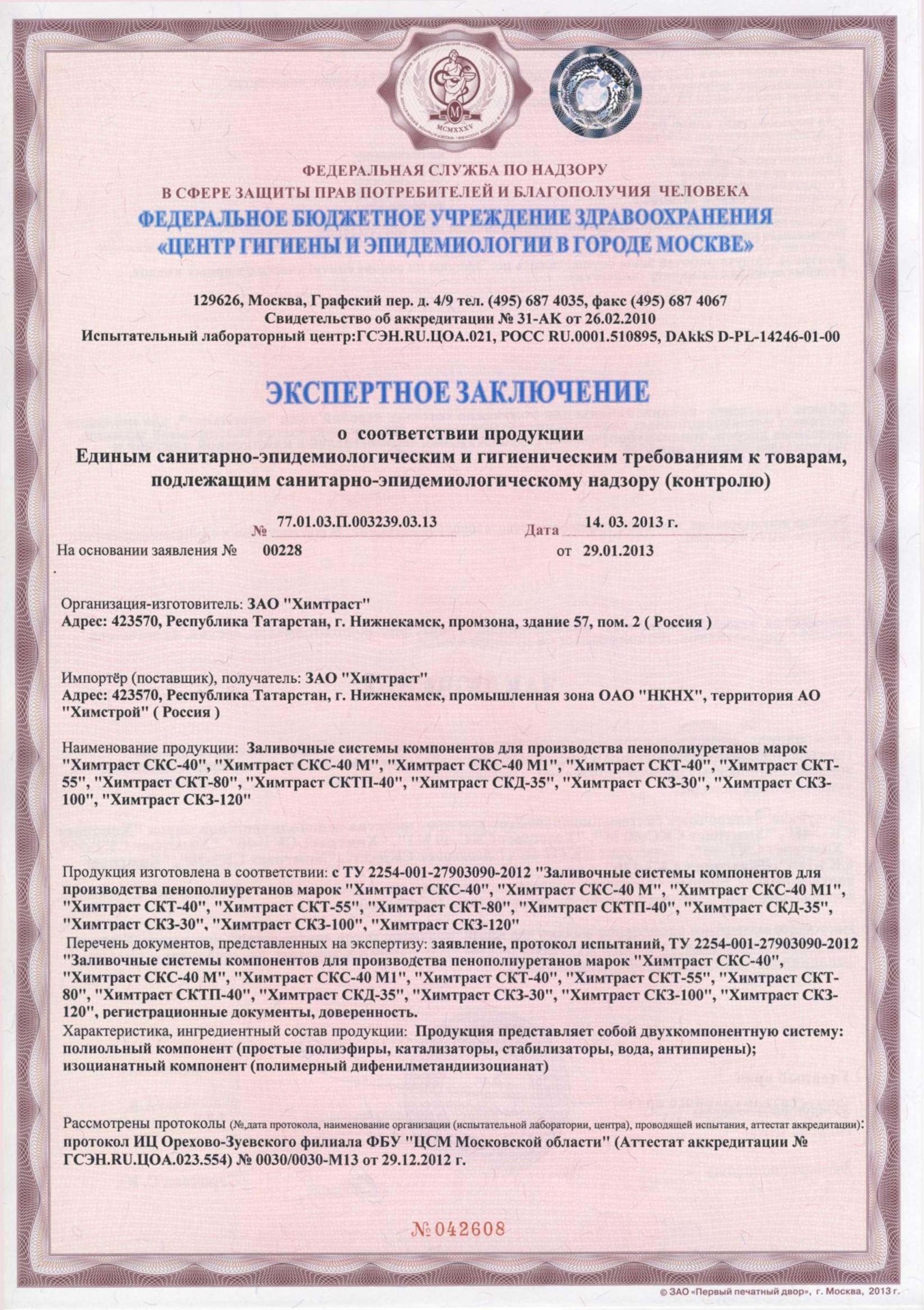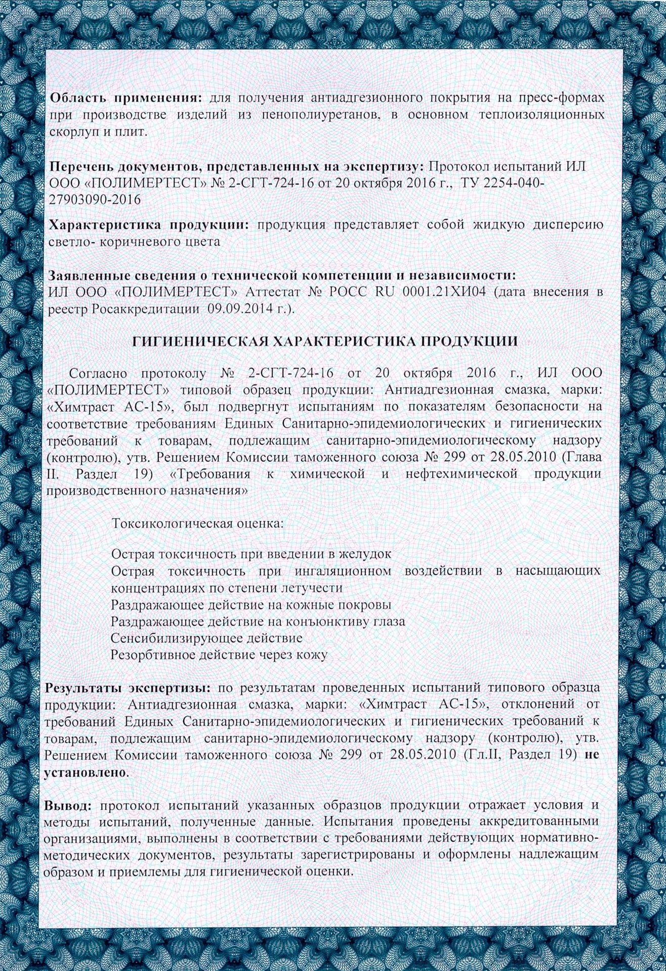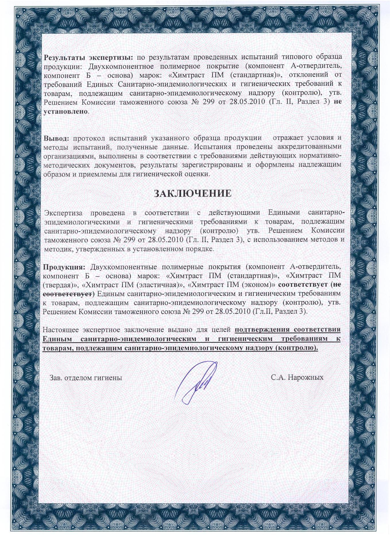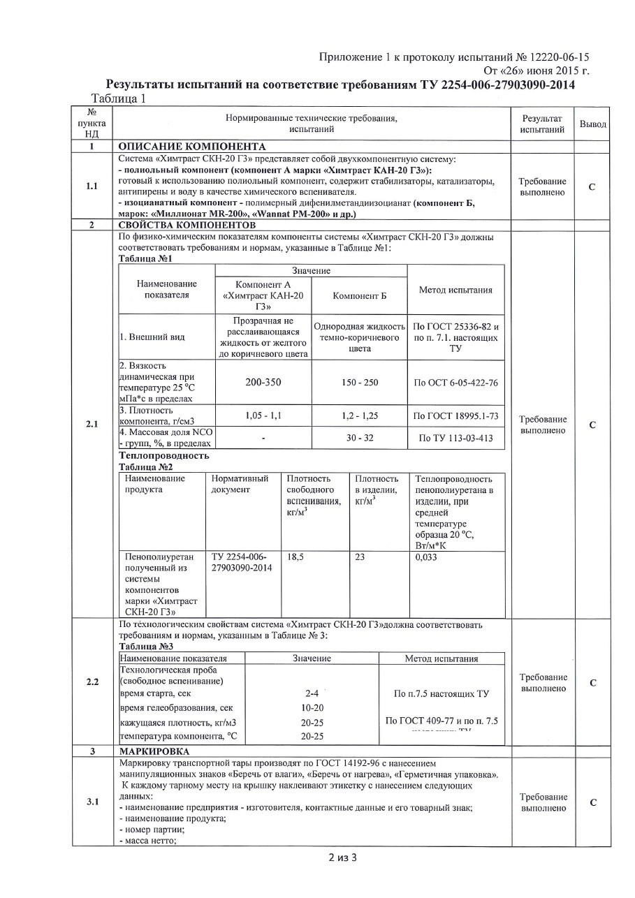 Сертификат соответствия на физико-механические свойства напылительных систем
