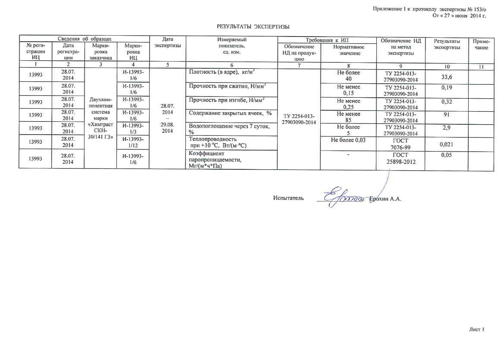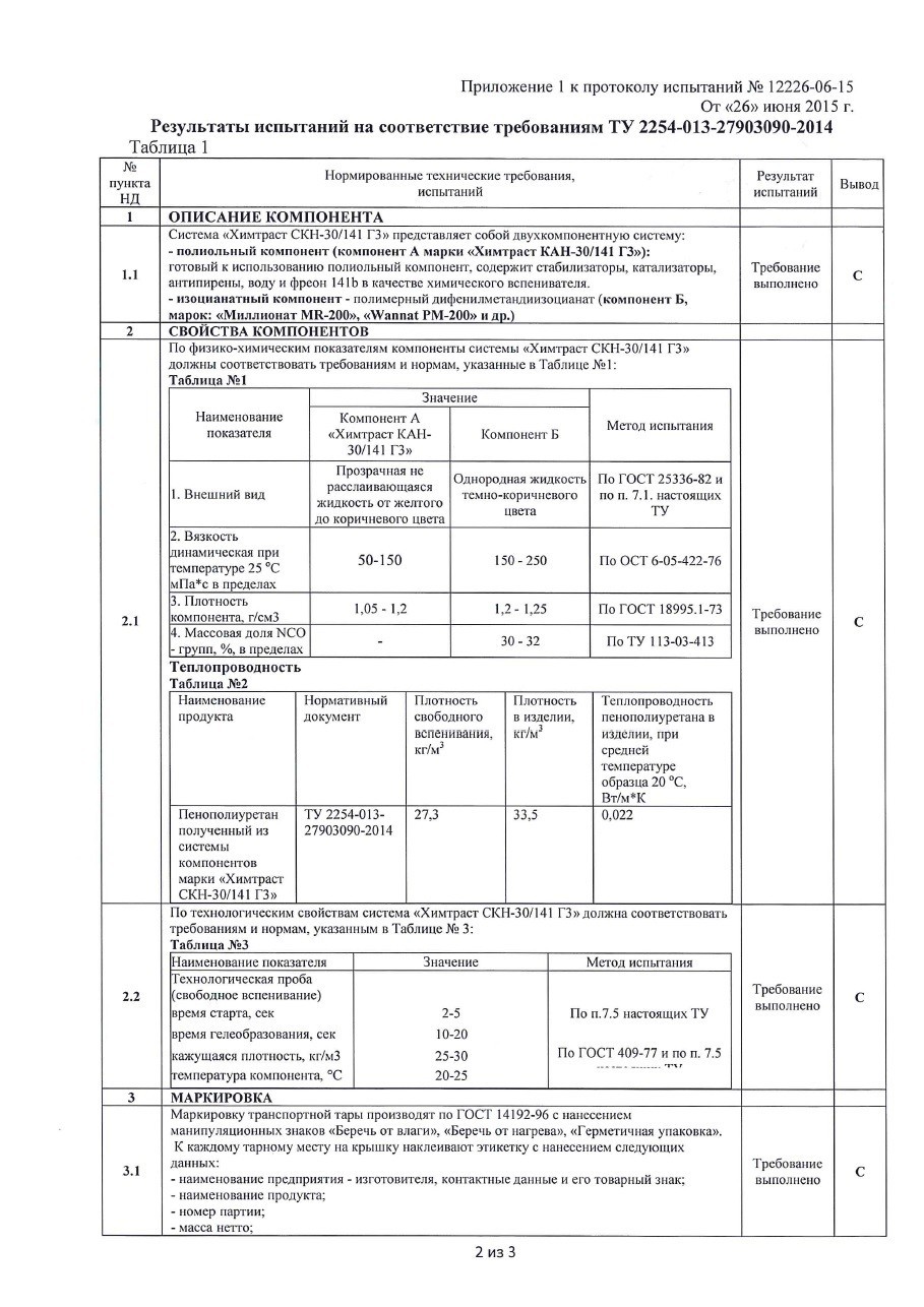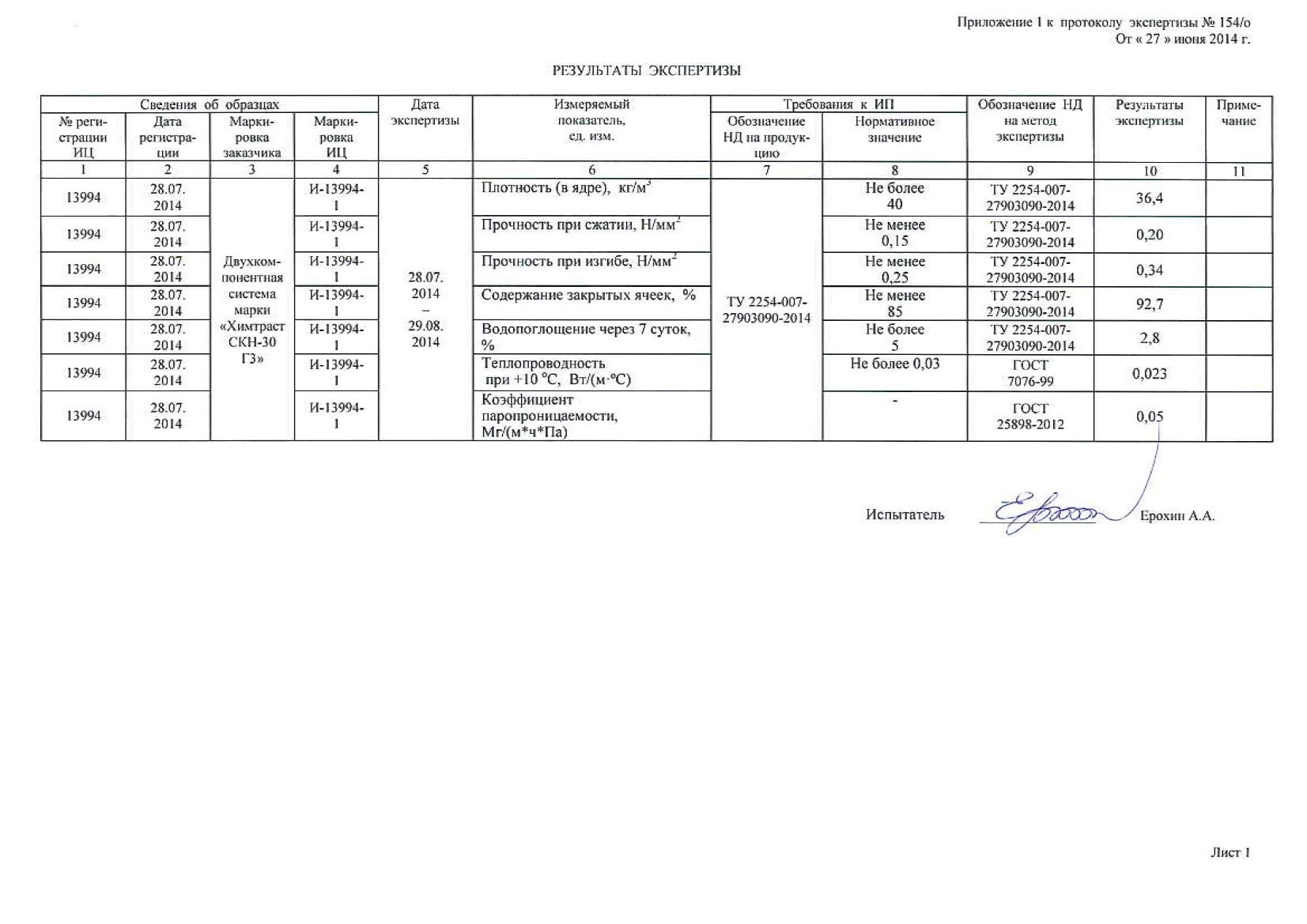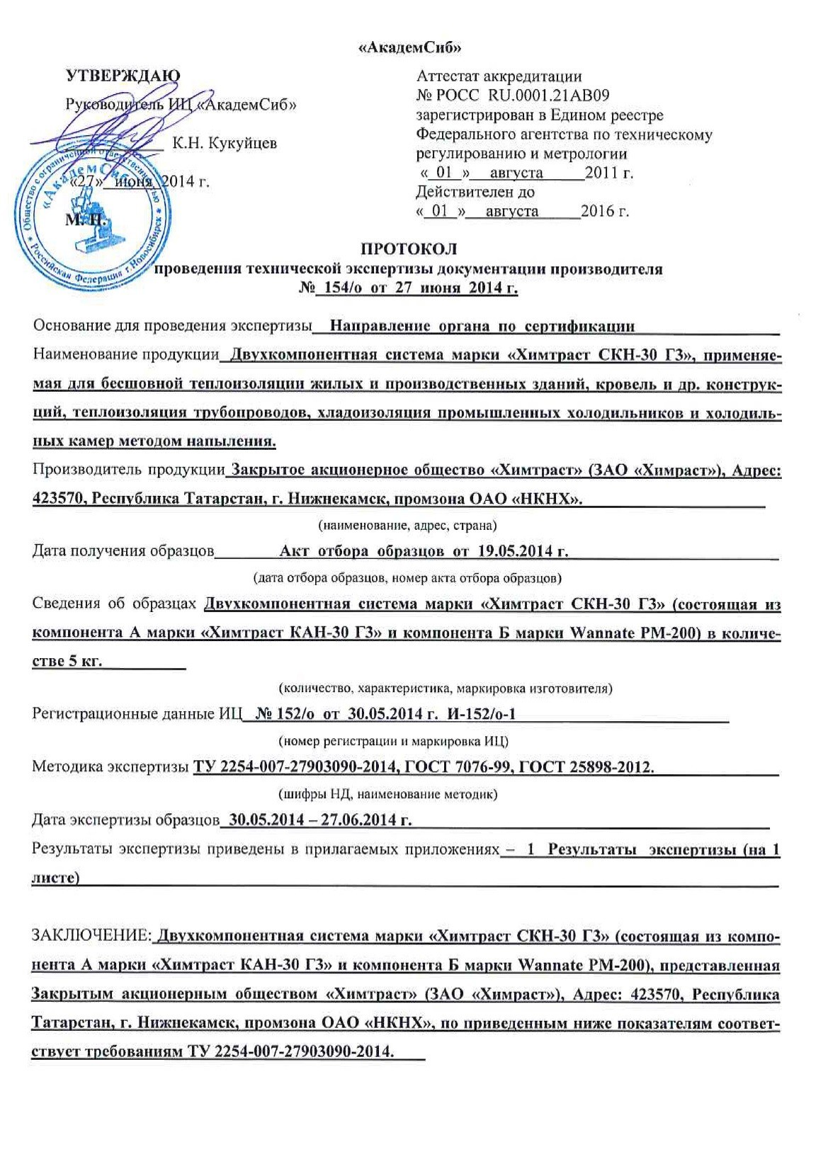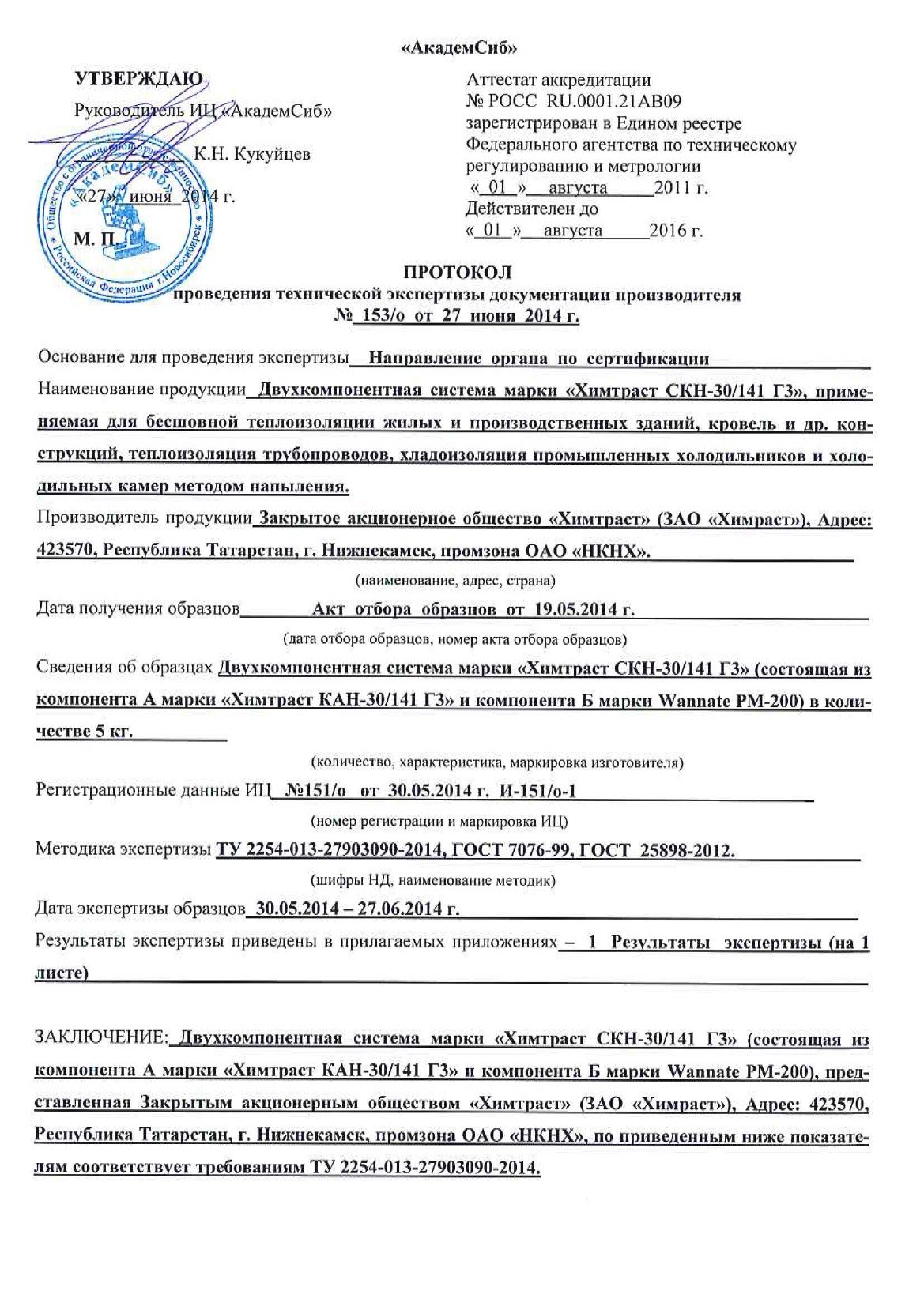 Протокол испытаний СКН-30/141 Г3 на теплопроводность
