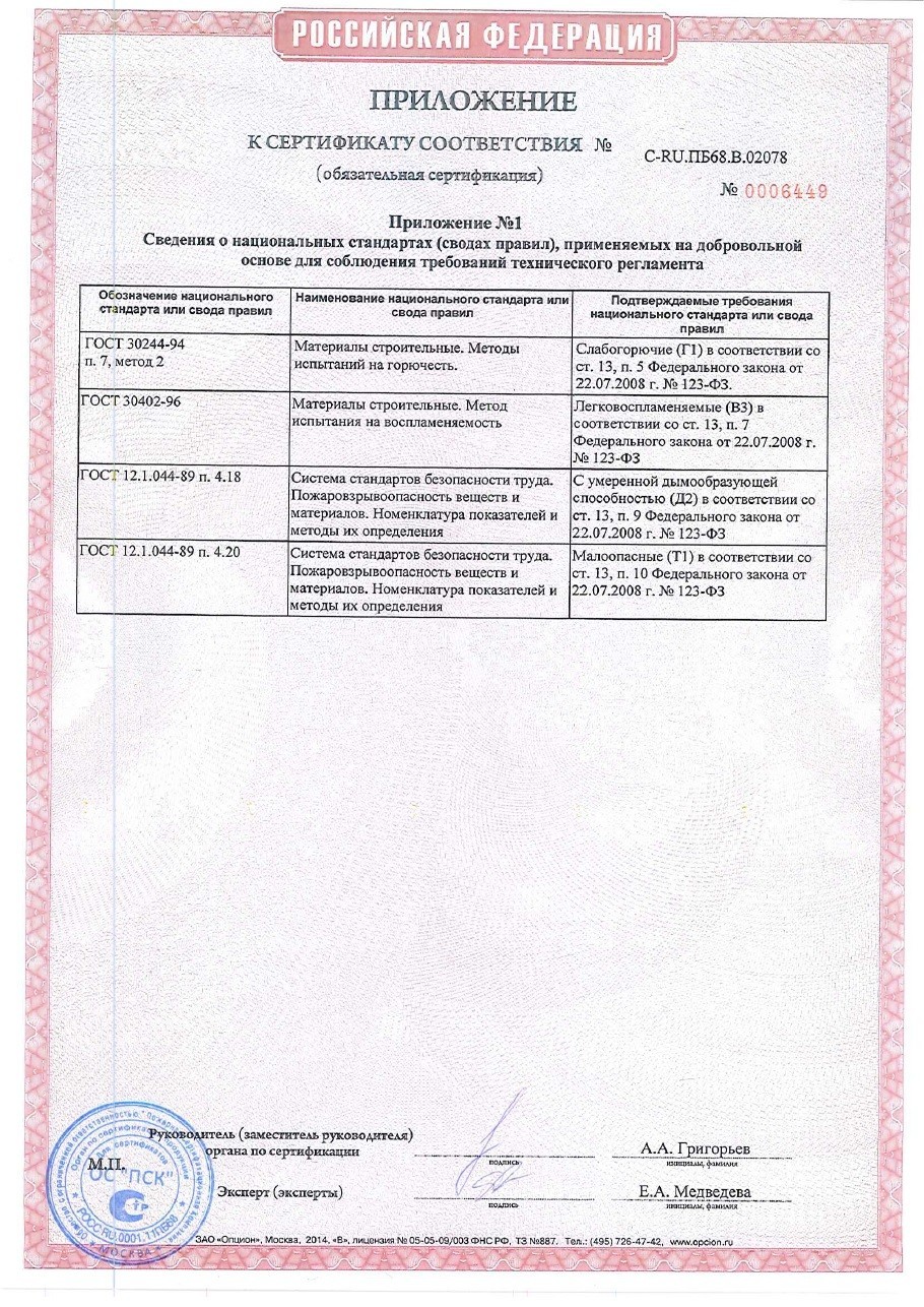 Пожарный сертификат на напылительные системы (класс горючести Г2)