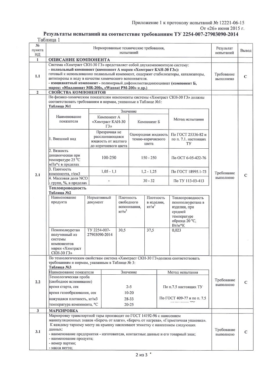 Протокол технической экспертизы на физико-механические свойства напылительной системы СКН-30 Г3