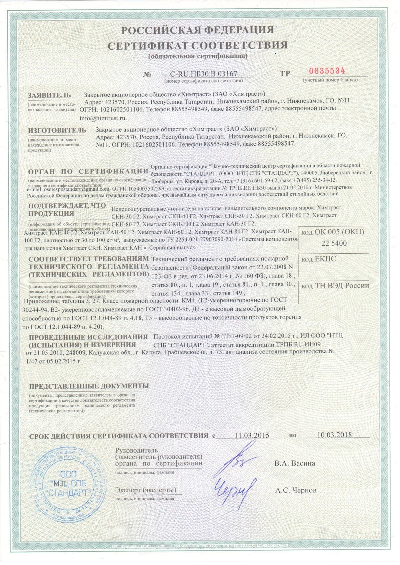 Пожарный сертификат на напылительные системы (класс горючести Г3)