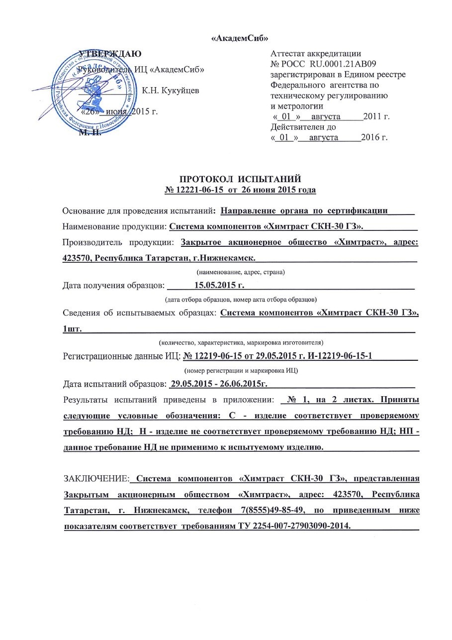 Протокол испытаний СКН-30 Г3 на теплопроводность